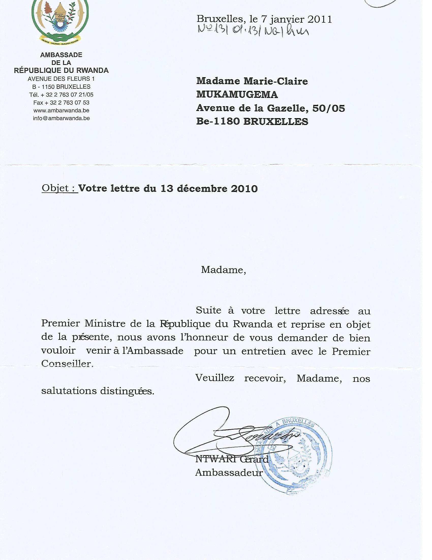 Réponse du gouvernement du Gouvernement RwandaisLe retour du gouvernement Rwandais via l'ambassade du Rwanda de BruxellesTélécharger