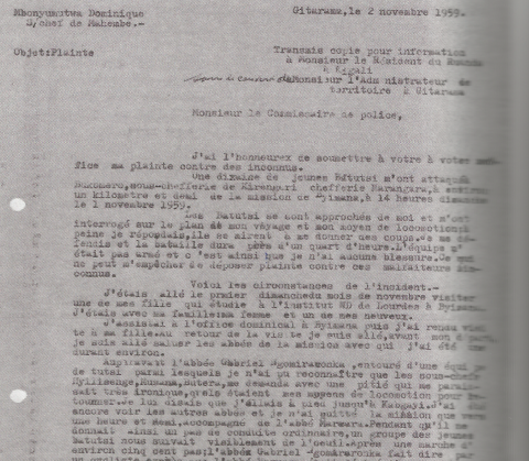 Plainte par MBONYUMUTWA Plainte par MBONYUMUTWA Dominique en 1959 suite à une aggression Télécharger