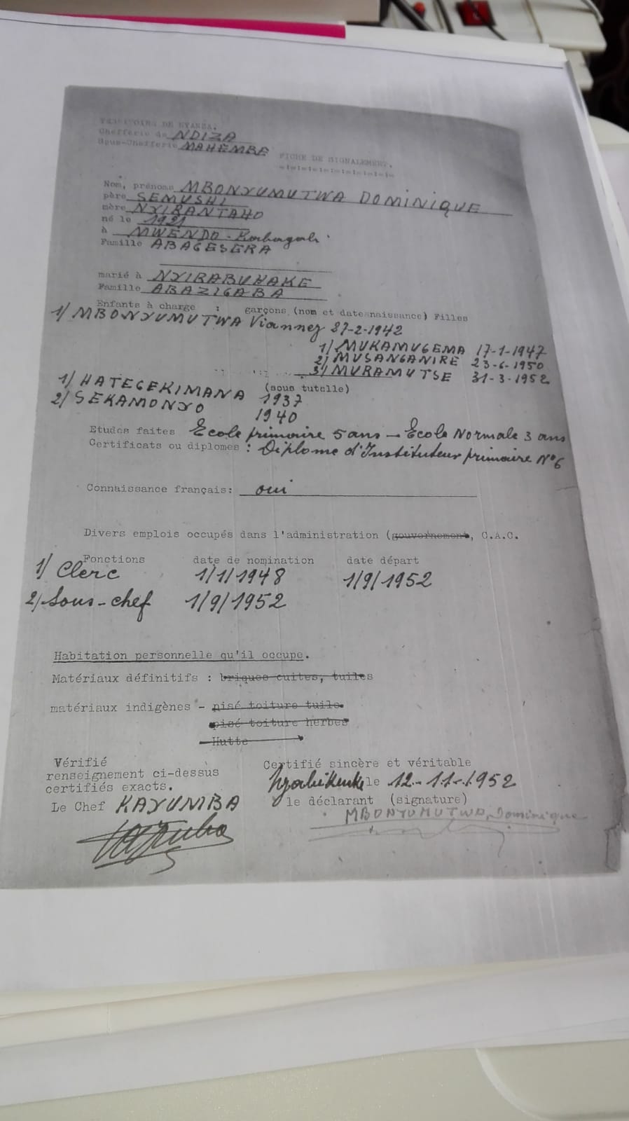 Je compte surtout m’appuyer sur ce que j’ai vu, ce que j’ai demandé à ses contemporains et surtout sur des documents que j’ai retrouvé en nombre suffisant pour  confirmer les événements de sa vie et surtout démentir les mensonges farfelus des Inkotanyi visant à renier ses mérites.